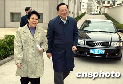 國務委員唐家璇在國僑辦主任陳玉杰陪同下前往中新社。中新社記者 滿會喬 攝