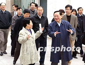 四月十日上午,中國國務委員唐家璇在國務院僑務辦公室主任陳玉杰的陪同下,到國務院僑務辦公室和中國新聞社考察指導工作。作者:滿會喬
