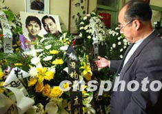 “這可能是五十年代末六十年代初媽媽演《花為媒》時期的合影。是他們生前最喜歡的合影之一。”吳老的愛女吳霜說。客廳的四壁還掛著很多新鳳霞各個時期的生活照和劇照以及兩老的合影。劉延東、胡德平、張鍥、李默然等人和文化部等單位都送來了花籃。很多客廳里擺不下的花籃只好擺到樓道里。吳霜說:“劉延東部長昨天勉勵我們說,你們的父母是杰出的藝術家,你們要繼承他們的事業,要像他們那樣做光明磊落的人。”“昨天來的人可太多了,很多都是七八十歲的老人,如丁聰、黃苗子夫婦等,有些走路都要別人攙著,來到靈前痛哭流涕。老爺子為人好,朋友多。”吳家的好友張盛春回憶說,昨天來的最高壽的就是黃苗子他老人家,今年九十了。