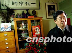 吳老的書房中,陳設一如以前。大部分家具是他和新鳳霞婚后買的,一用就用了五十多年。壁上除了照片,還掛著齊白石先生為新鳳霞題的兩句詩:“桐花萬里丹山路,雛鳳清于老鳳聲。”吳老疼愛的小貓不知主人已去,溜進書房喵喵叫著。舒乙告訴記者,現代文學館計劃為吳老設立一個個人文庫,里面將陳列老人家的書籍和手稿。