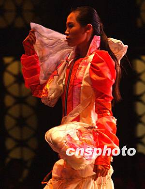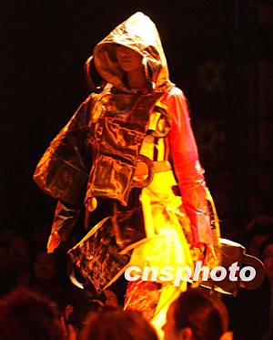 法國學生維吉尼亞·理查德設計的塑料袋時裝,今春在北京展示出她的色彩創意。作者:賈國榮