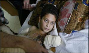 中新網4月14日電 巴格達城醫院的護士寫信請求布什和布萊爾立即將12歲的斷臂孤兒阿巴斯空運出伊拉克、接受專家治療,否則阿巴斯生死難測。