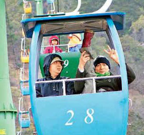 “華仔”笑道:“開始見到那些乘客都伏在吊車的欄桿,覺得好奇怪,何以不看風景?到自己坐上吊車后,才知道原來上山不時會遇大風,沙塵滾滾,滿面滿口都是沙,不可以不伏低!”