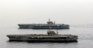 圖:“小鷹號”和“星座號”航母本周離開海灣