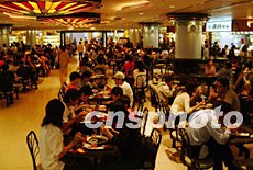 香港政府呼吁市民在作好預(yù)防“非典型肺炎”傳播措施之際,調(diào)整心態(tài)面對(duì)正常生活,21日一家美食廣場(chǎng)高朋滿座。
