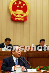 第十屆全國人大常委會四月二十五日在北京人民大會堂舉行首次法制講座,由楊景宇委員講解中國的立法體制、法律體系和立法原則。作者:毛建軍