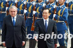 中新社北京四月二十五日電(記者姜知然)中國國務院總理溫家寶二十五日在人民大會堂與法國總理拉法蘭舉行會談時表示,拉法蘭總理此次訪華意義重大,對中法關系的深入發展將起到積極促進作用。