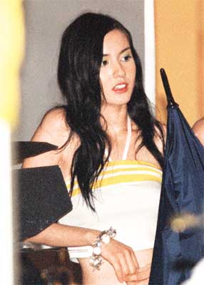 身穿露膊背心的Mandy,長發披肩,外表清純,與初出道的張柏芝有七分相似,Mandy三圍雖不似張柏芝激凸,但其32、24、34的三圍穿起吊帶背心時卻顯得青春無敵,難怪周星馳第一眼便看中了她,更說Mandy前途無可限量。