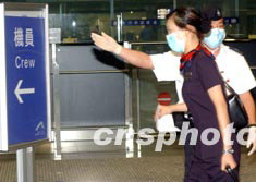 近日,香港“非典”疫情逐漸趨于穩(wěn)定,香港機(jī)場管理局仍嚴(yán)格執(zhí)行各項(xiàng)預(yù)防“非典”措施,所有機(jī)組人員需通過體溫探熱后方可登機(jī)。 中新社傳真 錢興強(qiáng) 攝