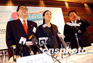 香港明天更好基金行政總裁袁金浩(左)介紹活動通過互聯網向全球推廣香港,促進香港經濟復蘇。