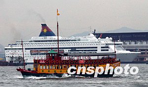 世界衛生組織5月23日起解除對香港和廣東省維持個多月的旅游警告,稱兩地已有效控制SARS疫情。消息無疑是香港重振經濟的強心針。圖為穿梭在維多利亞港灣的海上郵輪和仿古游船將迎接游客重臨香江。洪少葵 攝