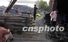 5月28日,河南安陽安利煤礦井口一批用作支柱的木料等待運往井下。由于出現新的坍塌和涌水,救援人員及時運送木料至井下加固巷道,以保護救援人員的安全,加快救援進度。作者:慎重