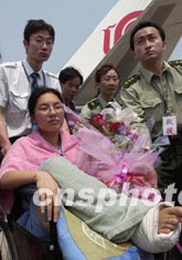 五月三十日,在阿爾及利亞地震中受傷的李燕斐等四名中國(guó)建筑工程總公司員工乘包機(jī)回到北京。在5月22日發(fā)生的阿爾及利亞地震中,共有9名中國(guó)人遇難,9人受傷。中新社記者:張煒