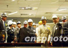 香港九廣鐵路公司主席田北辰,6月2日帶領嘉賓參觀竣工的南昌站大堂控制室,該站是地鐵網絡的一個全新車站,將于2003年秋季投入服務。