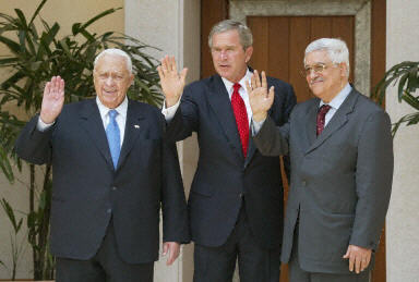 另?yè)?jù)報(bào)道,約旦國(guó)王阿卜杜拉二世4日在亞喀巴王宮分別會(huì)見(jiàn)美國(guó)總統(tǒng)布什、以色列總理沙龍和巴勒斯坦自治政府總理阿巴斯,并在三方會(huì)晤結(jié)束后主持了記者會(huì)。