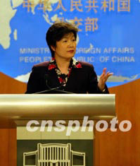 中國外交部發言人章啟月六月五日就國家主席胡錦濤首次出訪、美以巴三方會晤、尼泊爾警方近日遣返中國非法移民等問題回答記者提問。中新社記者:滿會喬