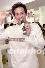 影視紅星陳豪6月5日在香港出席法國化妝品牌「萊莉雅」專門店開幕儀式,陳豪于店內找到合適的染發色樣。 中新社記者 鄧慶樂