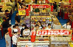 “臺灣美食節2003”六月十三日在香港開幕,此次美食節云集臺灣新鮮蔬果、乾貨食品、飲料及冷凍食品等二百多種,吸引眾多香港市民前往選購。潘索菲 攝