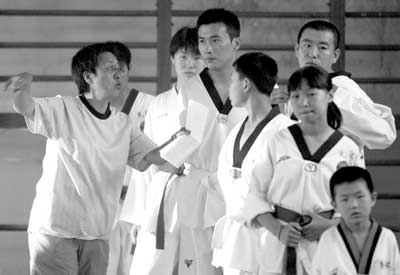 一大早,記者就趕到什剎海體校。道館外,一幫跆拳道館的學員們早已換好了行頭,等著他們的“同學”柳云龍的到來。盡管演員們還沒有來到現場,可是跆拳道館內攝影、燈光、錄音等幕后工作人員卻已經把一切準備工作完成。可能是幾天來的勞頓,大家都休息不好,場邊的椅子上一個小伙子睡著了。劇組周小姐說:“我們今晚還要忙到夜里一點。”雖然這幾天非典疫情已經得到控制,但是劇組為了防患于未然,還是立下了一個規矩:拍攝時,現場不得超過50人,而此前所有的人在進學校大門時已經測過了體溫。