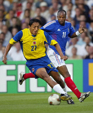 哥倫比亞隊目前正處于進球荒,在這場比賽之前,該隊已經有5場比賽沒有入球。不過本場比賽面對衛冕冠軍法國隊,他們卻絲毫沒有表現出弱隊的樣子。法國隊缺少了中場大將齊達內和維埃拉,球隊進攻組織有些凌亂。上半場,場上局面僵持,法國隊也只有一兩次像樣的進攻。