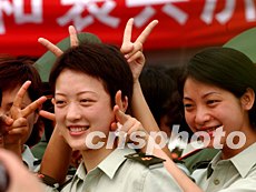 參加北京小湯山戰(zhàn)地醫(yī)院抗疫會戰(zhàn)的解放軍三軍白衣戰(zhàn)士,完成任務(wù)后拍照留念,六月中下旬準(zhǔn)備分批撤離。中新社記者:賈國榮