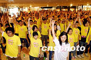 擦亮香港大行動-「義」氣青年發動儀式,6月28日在海運大廈舉行。來自多家大學的一百多名大專生浩浩蕩蕩的宣傳重建香港。作者:洪少葵