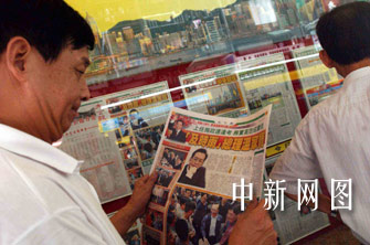 香港媒體關注國務院總理溫家寶訪港。香港媒體關注中國國務院總理溫家寶訪港,29日報刊雜志頭條刊登新聞,市民駐足瀏覽。中新社記者洪少葵攝