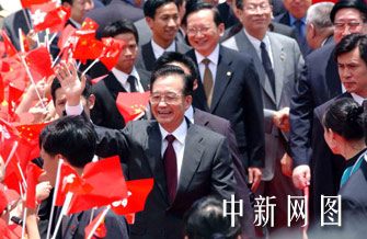 上午十一時(shí)四十分許,溫家寶乘坐的專機(jī)平穩(wěn)降停香港國際機(jī)場。他微笑著走出艙門,向歡迎的人群揮手致意;在走下舷梯中途,他再度揮手。