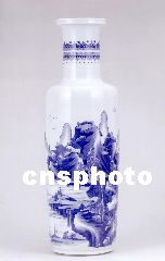 圖為清康熙青花山水人物圖大棒槌瓶,是難能可貴的大器,估價五十萬元人民幣。中新社圖