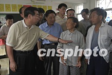 回良玉在滁州紫薇小學看望受災民眾后,叮囑當?shù)卣賳T,一定要把人民的利益放在第一位,對受災民眾的安置工作要考慮得周到些。