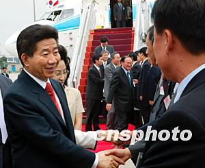 韓國總統盧武鉉七日上午抵達北京,開始其訪華行程。盧武鉉將在北京停留三天后,訪問上海。中新社記者:鄭萍萍