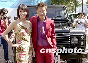 歌星許志安7月10日在香港與正東唱片公司續約,獲唱片公司高層送上越野車助慶,擔任大會司儀的鄭裕玲為他高興。作者:鄧慶樂