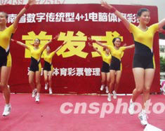 七月十二日,海南省率先在全國推出“四加一”體育彩票新玩法。在?诮鹗兰o廣場舉行的首發儀式上,模特跳舞表演助興。作者:王辛莉