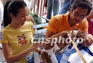 香港愛護(hù)動(dòng)物協(xié)會(huì)七月十三日在香港舉行“寶寶健康快樂之星選舉”,由專業(yè)獸醫(yī)和知名人士擔(dān)任評(píng)判,香港歌星莫文蔚和藝員陳啟泰擔(dān)任嘉賓評(píng)判。中新社記者:錢興強(qiáng)
