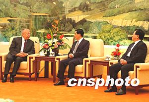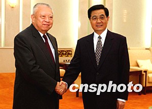 中新網7月19日電 據中央電視臺的簡短報道,中國國家主席胡錦濤今天下午在人民大會堂會見了赴京述職的香港特別行政區行政長官董建華。
