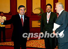 中國商務部部長呂福源,二十二日在大連會見包括奧地利經(jīng)濟勞動部副部長約瑟夫·邁耶爾(右一)在內(nèi)的部分出席第五屆亞歐經(jīng)濟部長會議代表團成員。作者:鄭萍萍