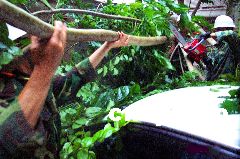 陽春市約有三千零九戶民房瓦面被揭開,部分民房倒塌。
