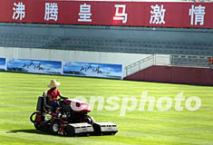 擁有貝克漢姆、羅納爾多、齊達內等世界級球星的西班牙皇家馬德里隊將于二十五日到達昆明,進行為期一周的訓練,工作人員二十四日在紅塔體育中心修整草坪迎接球星們的到來。毛建軍 攝