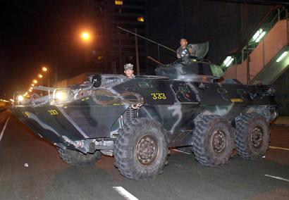 據法新社報道,阿羅約發表全國電視講話說:“我限令你們在今天下午五點之前投降繳械,回到兵營去。”