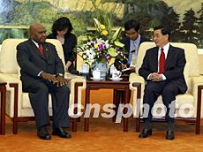 中國國家主席胡錦濤三十日在北京會見巴布亞新幾內(nèi)亞總督阿托帕爾。中新社記者:滿會喬