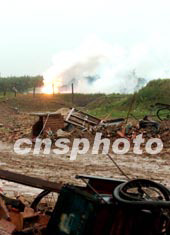 在現場采訪的過程中,記者在引爆現場還能看到零星的火焰。