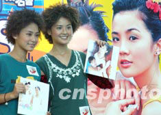 香港音樂組合TWINS,八月三日在香港舉行的十四屆書展上,出席簽名活動。圖為TWINS在書展簽名會上。中新社記者:錢興強