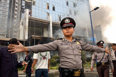 印尼首都雅加達南部的中心商業區附近的一家飯店發生劇烈爆炸。周圍幾幢建筑也受到爆炸沖擊。目擊者說至少有四具尸體被抬出現場。警方確認已有5人在爆炸中死亡,另有5人重傷。