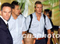 星光奪目的皇家馬德里足球隊(duì)明星貝克漢姆八月六日抵港,受到千余名球迷歡迎。中新社記者:潘索菲