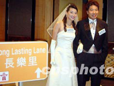 香港演藝界模范夫妻林敏聰及陳伶俐,8月7日以結婚禮服打扮,出席杜蕾斯推出持久裝安全套發布會。大談夫妻性生活之道,同意性生活的滿意度與婚姻的滿意度有關.作者:張慧愉