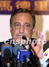 “皇馬”主席佩雷斯7日在香港記者會(huì)上,就球員6日晚未能參加在大球場(chǎng)的操練,公開道歉,他解釋問(wèn)題出于缺乏溝通。中新社記者:鄧慶樂(lè)