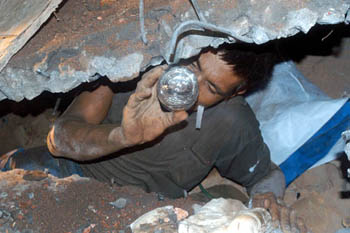 省委常委、市委書記鄭立中趕到了,受困工人的安危緊緊牽動著他的心。他焦急地問湖里區委書記何清秋:“還有多少人被壓在磚礫里?”當后坑派出所的民警陳德福掰著指頭報出受壓的人數后,鄭立中果斷地對在場指揮的市消防支隊領導說,要馬上弄清還埋在鋼筋水泥板下的民工的方位。接著他詢問了消防戰士搶救裝備的情況,得知在市委市政府的重視下,我市消防部隊的裝備是一流的,能夠應付急險搶救的需要,鄭立中放心地點了點頭。同時他讓有關部門領導立即向地質勘探部門請求探測設備的支援,他還請市安全監督局的同志了解外地搜救的辦法。隨后鄭立中把有關部門領導召集到身邊說:“人命關天,我們要想盡一切辦法救出每一位受困工人。”鄭立中詳細詢問事故搶救情況,多次向責任區民警、房東和脫險工人核實受困工人準確人數。他再三強調,一定要調查精確,確保每個受困工人都能施救成功。