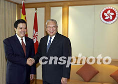 香港行政長官董建華八月十二日歡迎剛抵港履新的外交部駐香港特別行政區(qū)特派員楊文昌。中新社圖