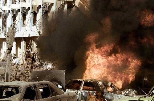 圖:聯合國駐伊拉克辦事處外汽車燃起熊熊大火