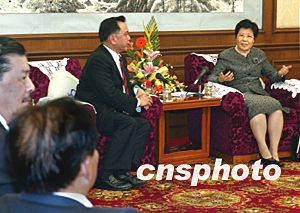 國務院僑辦主任陳玉杰二十二日在北京釣魚臺會見以余國春(左二)為團長的香港廣東社團總會訪京團一行,雙方就居民個人可申請辦理赴港游等問題交換意見。中新社記者:鄭萍萍